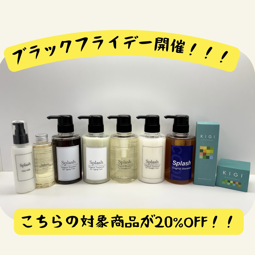 スプラッシュオリジナル商品とKIGIヘアケアシリーズが全て20%OFFに✨