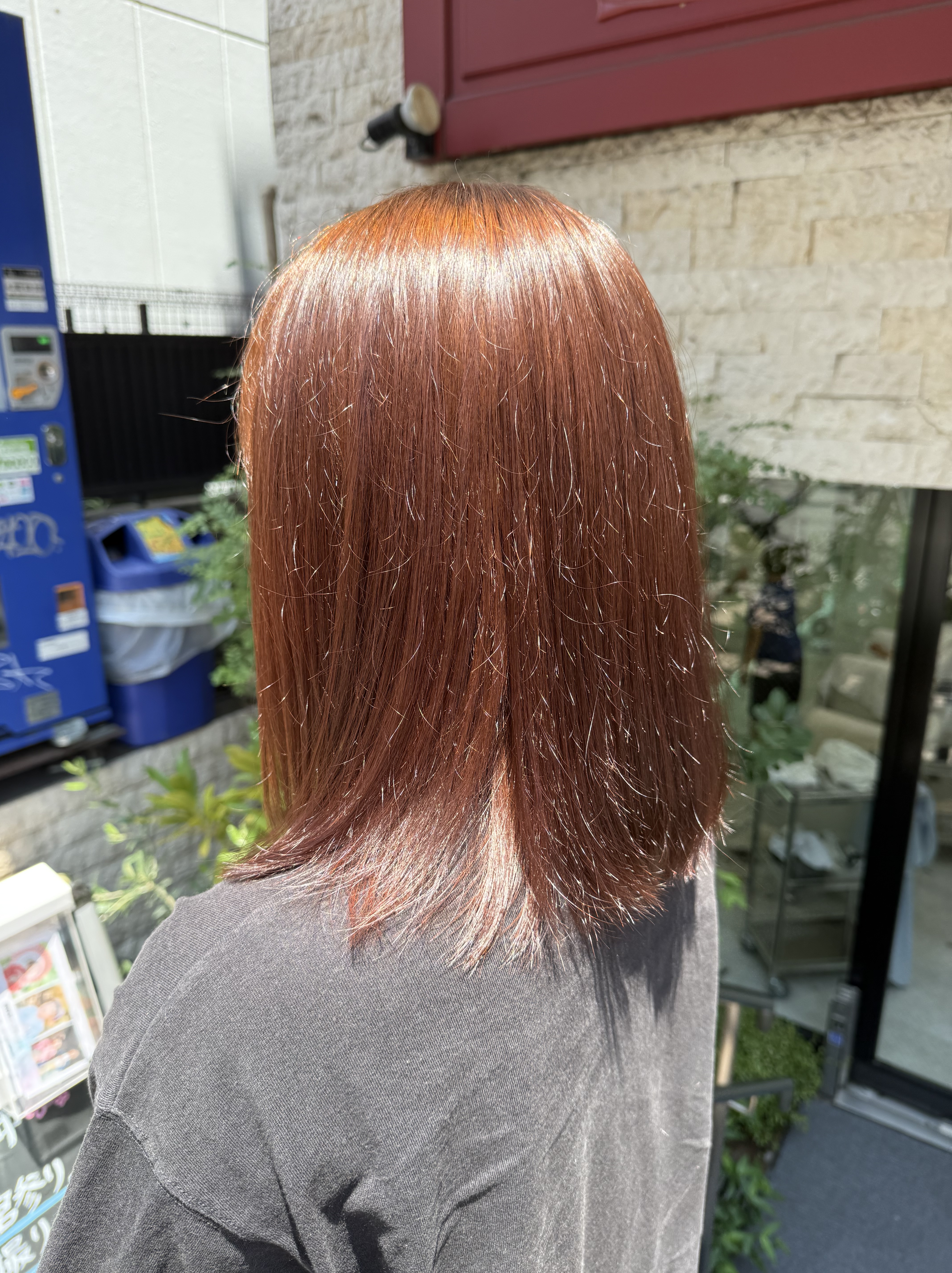 こちらのお客様は、ブリーチなしで明るいオレンジカラーに仕上げました。