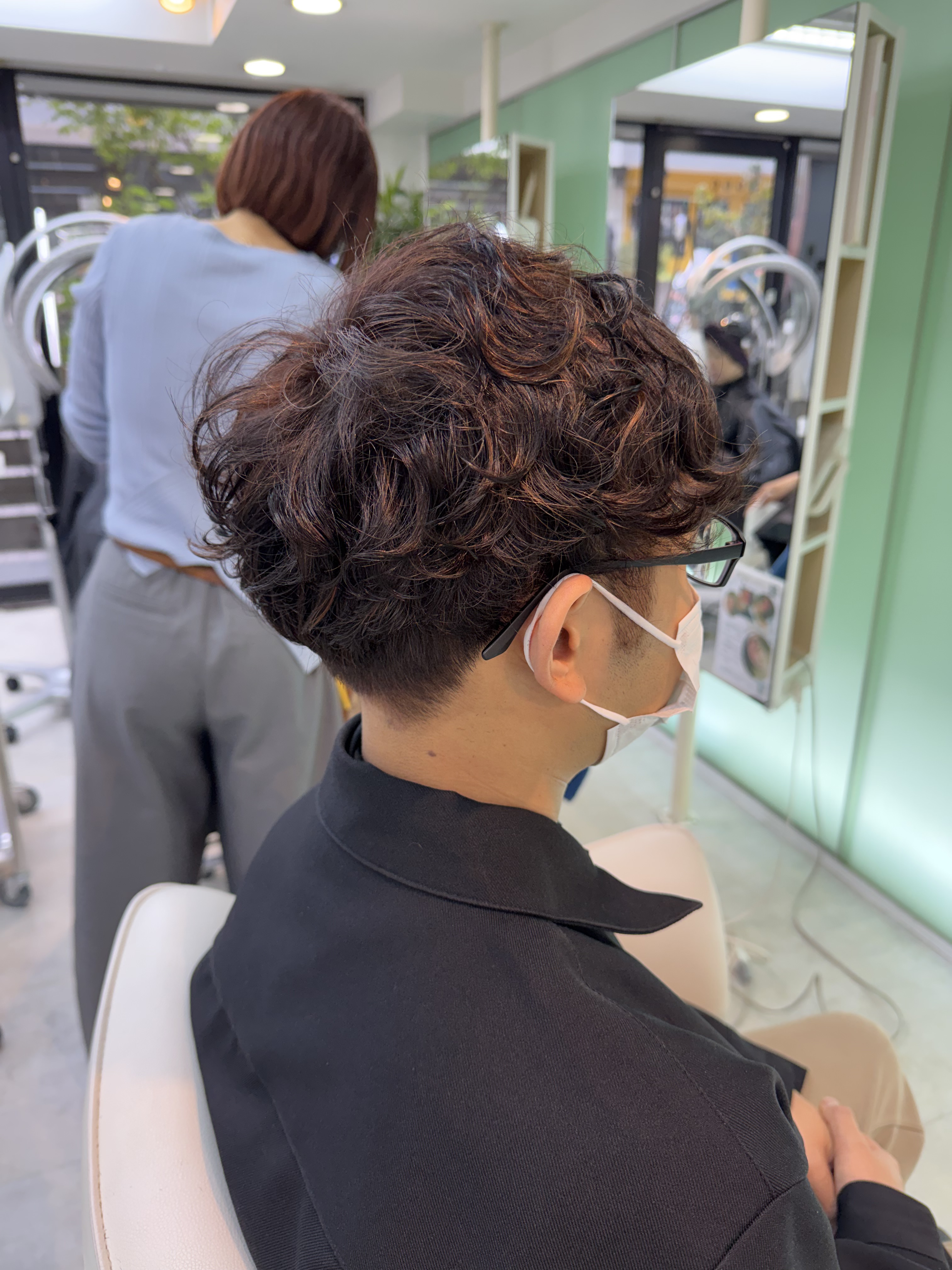 推しカラーのオレンジをハイライトに入れてパーマで動きを出しました✨