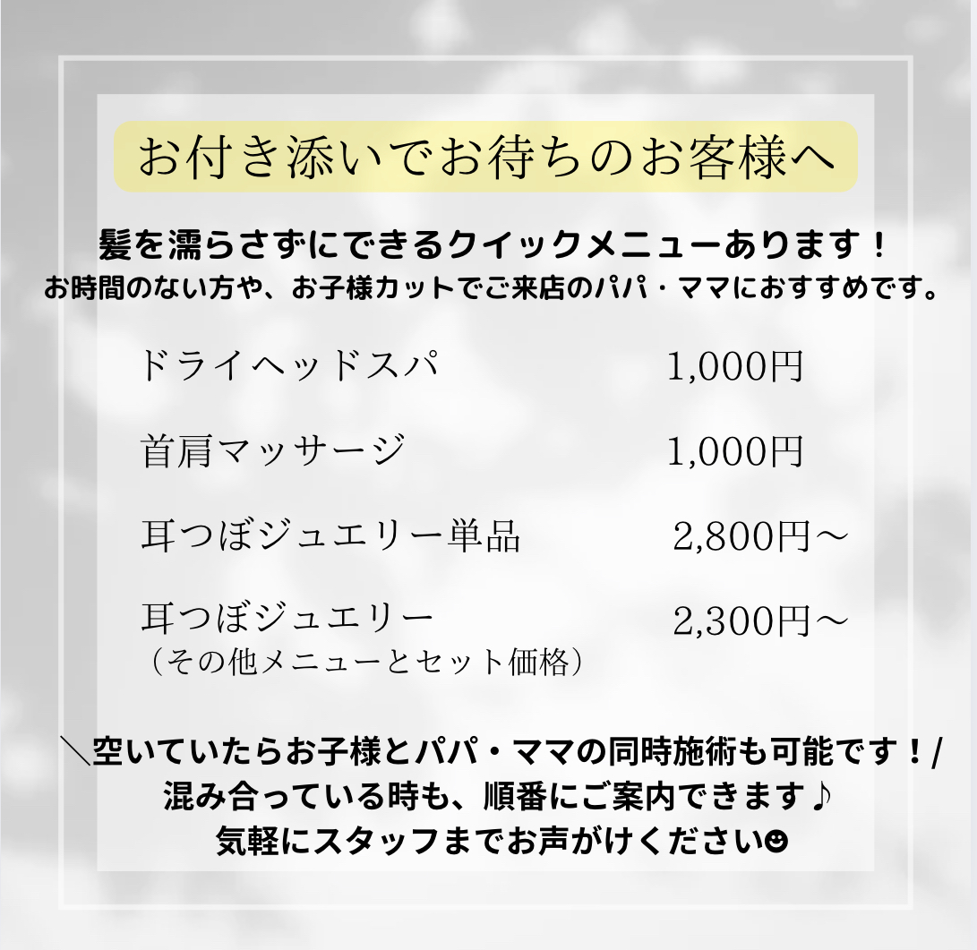 店内が空いている時はお子様と同時に施術できますし、混み合っている場合でも順番にご案内いたしますので、どうぞお気軽にお声がけください🫶🏻